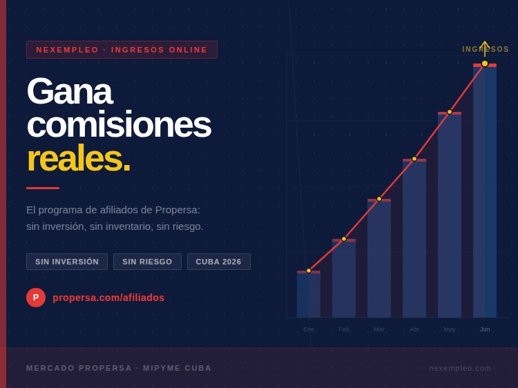 En Cuba, donde el acceso a ingresos adicionales es una necesidad concreta y no un lujo, los programas de afiliados representan una de las pocas vías reales para generar dinero sin capital inicial. El programa de afiliados de Propersa —el mercado online de productos de consumo en La Habana— permite a cualquier persona ganar comisiones recomendando una tienda que ya funciona, ya entrega y ya tiene clientes. Esta guía explica exactamente cómo funciona, cuánto se puede ganar y cómo empezar hoy.